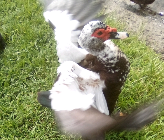 My only idea was a plywood board That we have resting on the porch's wall; I thought maybe it could be a platform To give an upward angle he could climb, Hopefully out of his predicament. When that failed I thought perhaps we could use It to goad him backwards the way he came By making a reverse ramp—as it's raised Parallel to the fence with him upwards, Might he slide down as if on a drawbridge? No. This merely squished him against the wall.